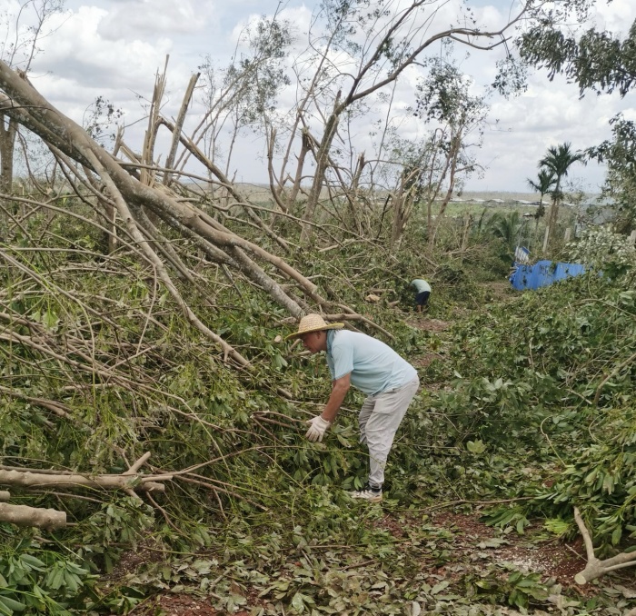 灾后清理树枝、恢复设备设施