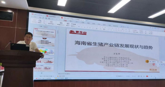 罗牛山畜牧品牌营销总监万长华作《海南省生猪产业链的发展现状与趋势》主题分享。通过对生猪生产、饲料生产、屠宰情况以及地方猪品种资源开发等多个维度,全面剖析了海南生猪产业的现状与未来趋势。